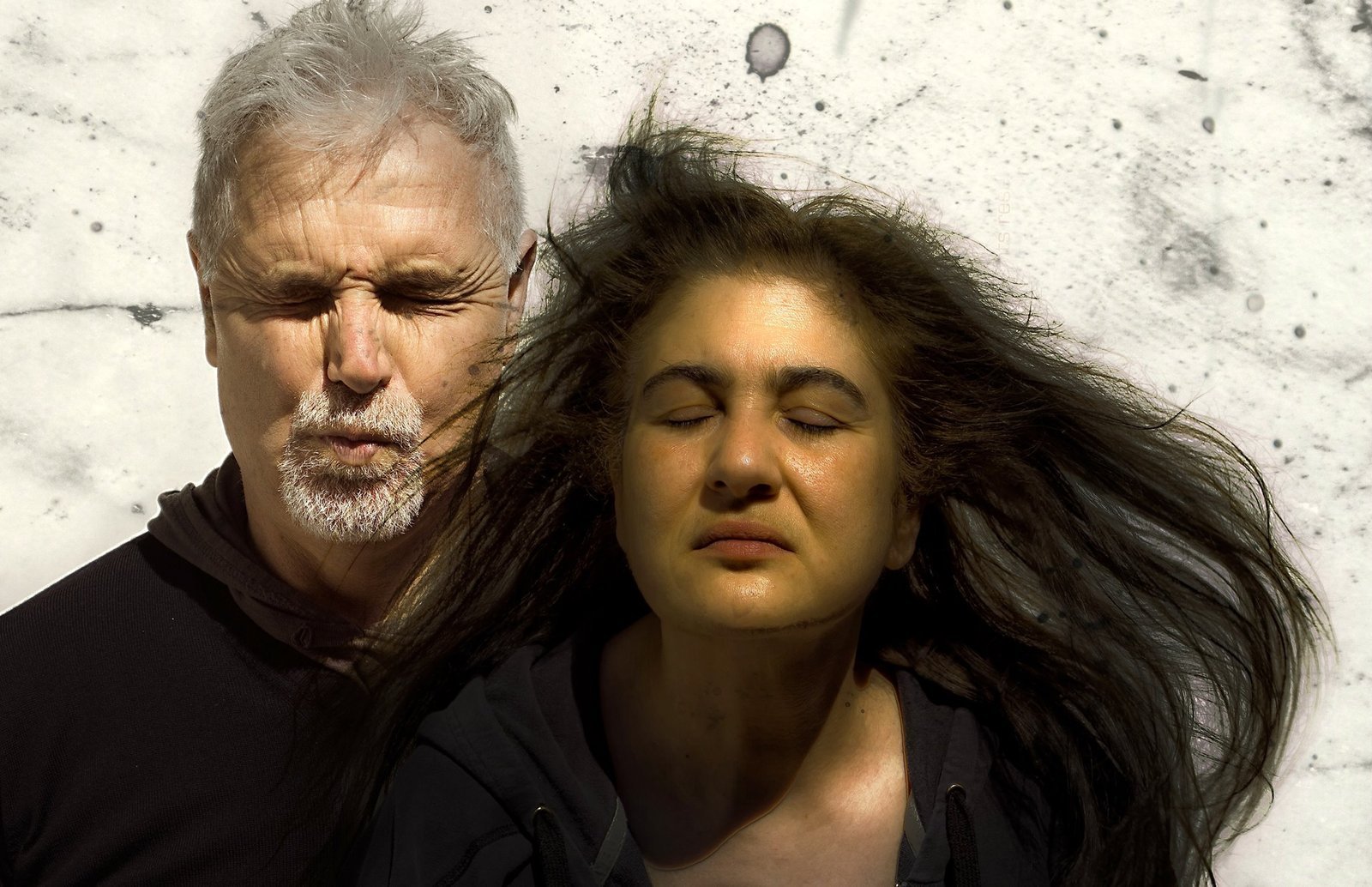 In TRACCE RIFLESSE, l’artista elabora un sofisticato sistema visivo basato sulla duplicazione e sull’intreccio materico, restituendo allo spettatore un’immagine che si situa tra introspezione e dissolvenza. Il soggetto, una figura femminile ripetuta specularmente, compare con gli occhi chiusi, assorta, come immersa in uno spazio di pensiero o in una memoria che non appartiene più interamente al presente. Le due presenze, identiche ma sfalsate, sembrano costituire due versioni di un’unica identità in dialogo silenzioso: l’io e l’eco, la presenza e la sua proiezione mentale. Tale riflessione sull’identità trova ulteriore forza espressiva nella superficie dell’immagine, attraversata da una trama di elementi grafici e materici – segni, lacune, texture organiche – che evocano erosioni, sovrascritture e sedimentazioni del tempo. Il trattamento visivo, che unisce fotografia, disegno digitale e manipolazione testurale, dissolve i confini tra figura e sfondo, in una poetica della fusione. Il volto e il corpo della donna sembrano diventare parte integrante del muro che li ospita, come se la pelle potesse assorbire la storia del luogo, o viceversa, come se fosse il mondo a scriversi sulla pelle. L’utilizzo del bianco e nero accentua il carattere atemporale e onirico dell’opera, privandola di riferimenti realistici e restituendo invece una dimensione metafisica: la figura è viva, ma sospesa in un altrove che ci è vicino ma non accessibile. Tracce riflesse è, in definitiva, un’opera che mette in scena il ritratto dell’invisibile, quel volto interiore che si forma nei silenzi, nelle ferite e nelle sovrapposizioni del vivere.