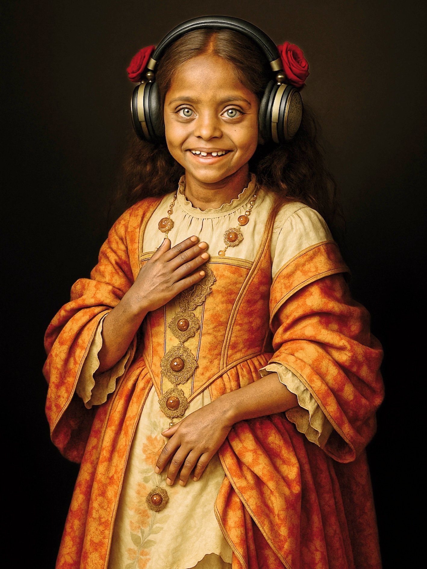 L’immagine che osserviamo, parte del ciclo “Iconoclastica” di Luciano Di Gregorio, porta il titolo eloquente di “Musica per il Paradiso”. Essa raffigura una bambina palestinese di Gaza, sospesa tra la delicatezza di un ritratto secentesco e la brutalità del nostro presente, evocando in modo diretto il dramma del genocidio che attraversa la sua terra. Un’anacronistica bellezza La prima percezione è quella di un’opera che dialoga con la pittura barocca e rinascimentale: la posa composta, il costume sontuoso dalle cromie calde, la mano sul petto in gesto solenne. Questo linguaggio estetico rimanda ai ritratti di corte, dove l’infanzia era idealizzata come simbolo di innocenza e promessa di futuro. Tuttavia, qui quella promessa è incrinata: lo sguardo della bambina, pur luminoso e vivo, porta con sé una gravità che eccede il contesto iconografico. Il cortocircuito della contemporaneità Sull’armonia antica irrompe un dettaglio perturbante: le cuffie moderne nere e imponenti, appoggiate sulle orecchie della giovane modella. Questo oggetto tecnologico, apparentemente dissonante, diventa la chiave di lettura dell’intera composizione. È il segno del presente che si sovrappone alla memoria storica, il simbolo di un mondo globalizzato che penetra persino nelle rovine della guerra. Le cuffie non sono semplicemente accessorio: rappresentano la possibilità di fuga, la promessa di una musica che consola, di un suono che possa coprire le esplosioni, i lamenti, le sirene. La tensione tra vita e morte Il titolo “Musica per il Paradiso” introduce un doppio registro. Da un lato, l’idea di un ascolto intimo e salvifico, come se la bambina stesse ricevendo melodie celesti capaci di portarla oltre la brutalità del mondo terreno. Dall’altro, l’allusione funebre: in un contesto di genocidio, “paradiso” diventa luogo di trapasso, spazio in cui l’innocenza violata si rifugia. È un titolo che pesa come una condanna e una preghiera al tempo stesso. Iconoclastica: il progetto Il ciclo di cui l’opera fa parte, “Iconoclastica”, si fonda sulla volontà di Di Gregorio di decostruire e rifondare i linguaggi visivi canonici. L’iconoclastia, per definizione, è la distruzione delle immagini sacre; ma qui l’artista opera un ribaltamento: non distrugge, bensì ricompone icone nuove, in cui i riferimenti classici vengono contaminati da oggetti, simboli e temi contemporanei. Il risultato non è la cancellazione della tradizione, ma la sua rifunzionalizzazione critica: un invito a guardare al passato per comprendere meglio le tragedie del presente. L’innocenza come campo di battaglia Il fatto che la protagonista sia una bambina palestinese non è un dettaglio secondario. In essa si concentrano tutte le tensioni della violenza politica: l’infanzia che dovrebbe essere sacra, protetta, si trasforma in terreno di scontro e sacrificio. La bambina diventa icona universale della vulnerabilità umana. Il suo sorriso timido e i denti mancanti non nascondono ma amplificano la brutalità del contesto: ciò che vediamo non è solo una “figura” ma una vita reale, minacciata e ferita. Un’opera che interpella “Musica per il Paradiso” non si limita a commuovere o a stupire per la sua raffinata costruzione estetica. È un’immagine che interpella lo spettatore, che lo costringe a domandarsi: di quale paradiso parliamo? Di quale musica? L’opera diventa specchio delle nostre responsabilità, del nostro ruolo di osservatori spesso inermi, a volte complici, quasi sempre incapaci di fermare la violenza. Conclusione Luciano Di Gregorio, con questa fotografia, ci offre un’icona del nostro tempo: una bambina che porta sulle spalle secoli di arte occidentale, ma che appartiene a una terra martoriata dall’oppressione e dalla guerra. Il suo sorriso innocente, incorniciato da cuffie nere e da un abito sontuoso, diventa il simbolo dell’eterna contraddizione tra bellezza e barbarie, tra vita e morte, tra memoria e presente. “Musica per il Paradiso” è, dunque, una preghiera visiva, un atto di denuncia e al tempo stesso un inno fragile alla speranza