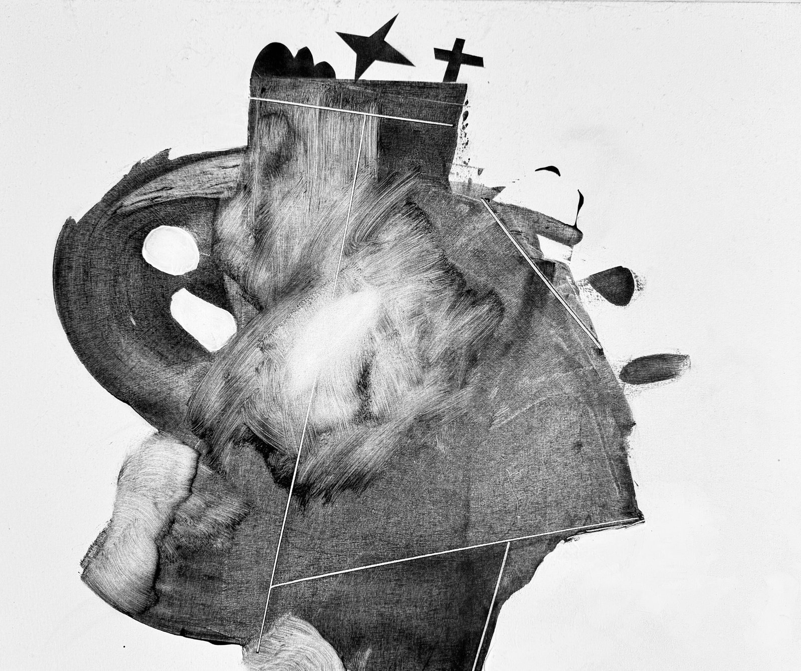 Figura inquietante di Luciano Di Gregorio: il sonno del segno, l’anatomia dell’incertezza Con Figura inquietante, Luciano Di Gregorio ci conduce in un paesaggio interiore dove la forma si disgrega e si rigenera sotto i nostri occhi. L’opera, costruita su tonalità monocrome e su un equilibrio instabile tra figura e astrazione, rivela fin dal primo sguardo un’intenzione poetica: mettere in crisi la visione, spingere l’osservatore oltre la soglia del riconoscibile. Nel cuore del lavoro si intuisce una forma umana, forse un volto, forse un corpo piegato nel sonno o nel dolore. È una presenza che non si lascia definire, un’identità liquida, disturbata da gesti pittorici che sembrano voler cancellare più che rivelare. Le pennellate trasversali, unite a sottili linee bianche che tagliano lo spazio, creano una tensione costante tra controllo e abbandono. L’artista impone e disfa, costruisce e smaterializza, come se volesse catturare l’essenza effimera della coscienza. Al di sopra, tre segni netti — una stella, una croce, un’icona astratta — appaiono come emblemi caduti, resti simbolici di un sistema di significati ormai in rovina. Sono reliquie moderne, sospese in uno spazio bianco che non è silenzio ma attesa, come una pausa carica di possibilità e minacce. Di Gregorio riesce a infondere nella materia visiva un senso psichico di turbamento: Figura inquietante è, appunto, una presenza che disturba, che richiama la nostra attenzione non per ciò che mostra ma per ciò che sottrae. È un’immagine che non si lascia pacificare, che costringe a interrogarsi su ciò che vediamo, su ciò che non possiamo più vedere — e forse neppure immaginare. Un lavoro denso, riflessivo, in cui la pittura diventa atto filosofico. Luciano Di Gregorio si conferma così un autore capace di abitare il confine tra il visibile e l’inconscio, tra la forma e il suo costante dissolvimento.